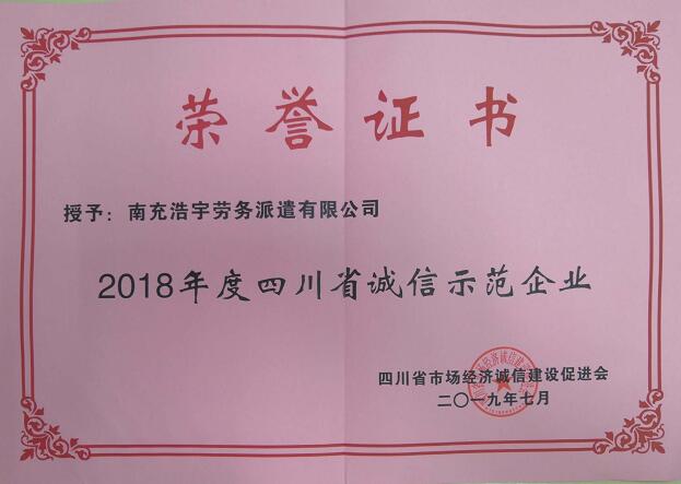 我公司獲得2018年度四川省誠信示范企業(yè)
